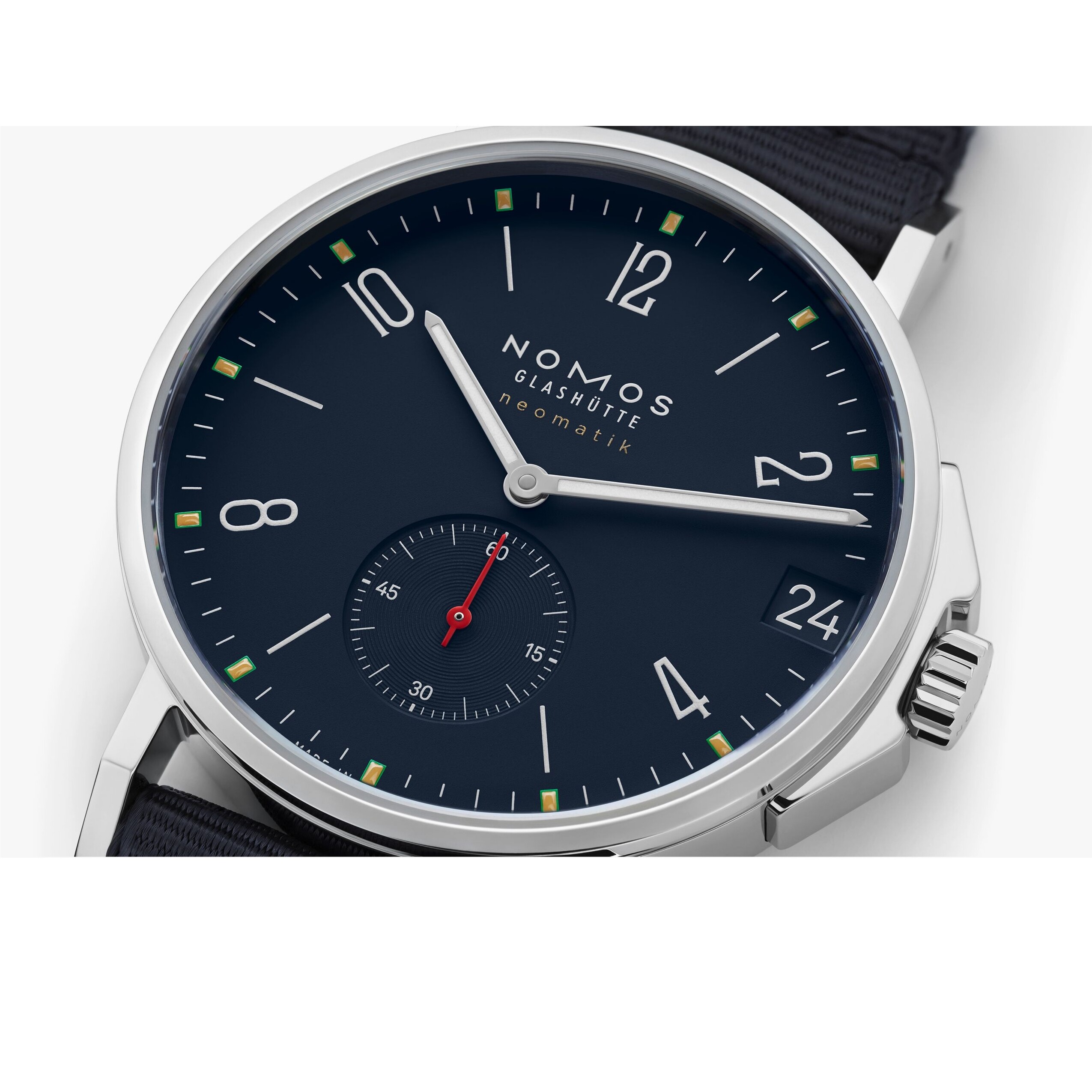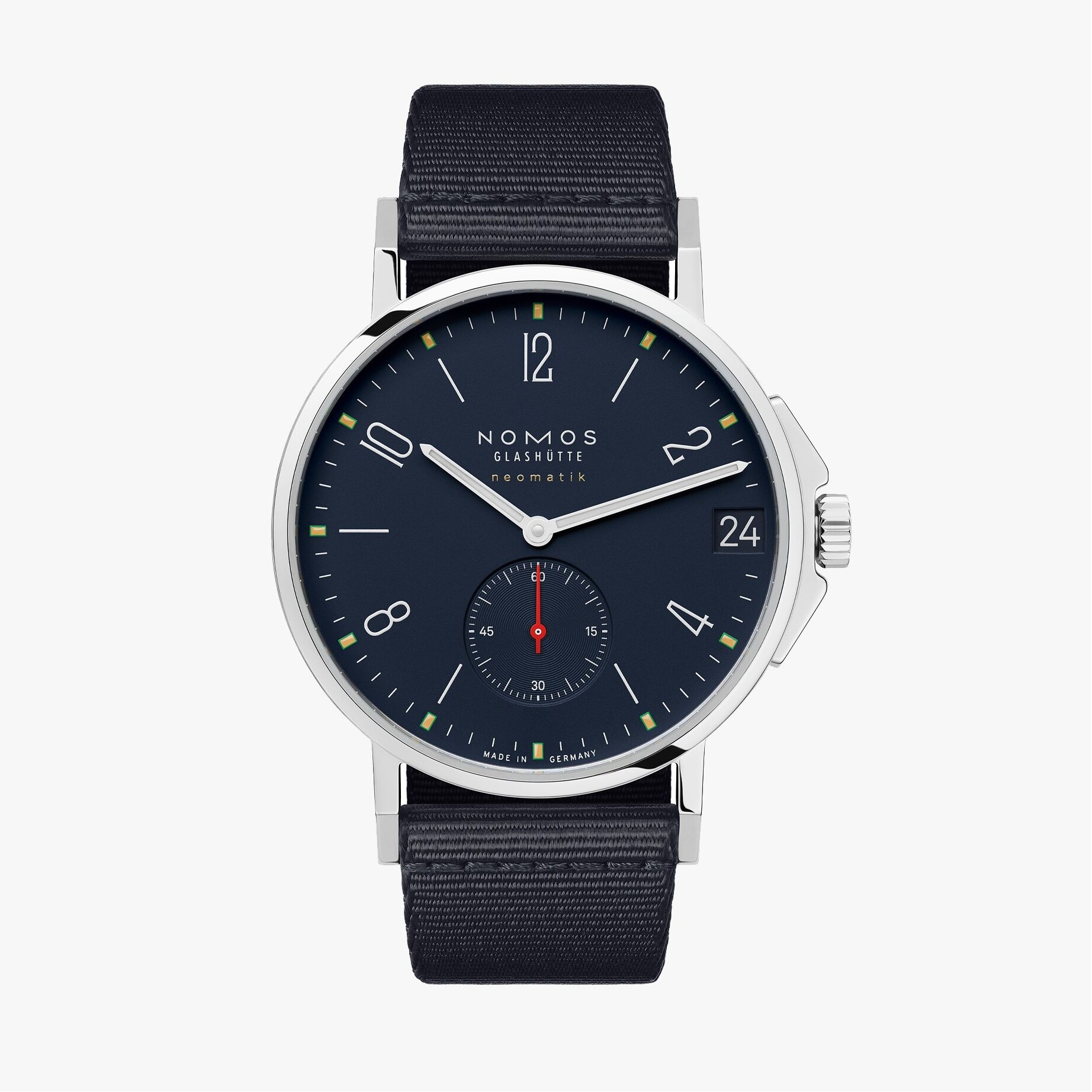 With this automatic watch on your wrist, you are ready to ride every wave life brings. It is appealing in both form and function, making Ahoi an excellent choice for the office and after hours, as well as any time things get wet. Water resistant to 20 atm, Ahoi is a reliable companion that will never leave you high and dry. Made in Glashütte, Germany, this versatile wristwatch is actually the slightly bigger brother of Ahoi neomatik Atlantik. In this version, it also features the patented NOMOS date mechanism with an extra-large window in the exact same color as the dial.