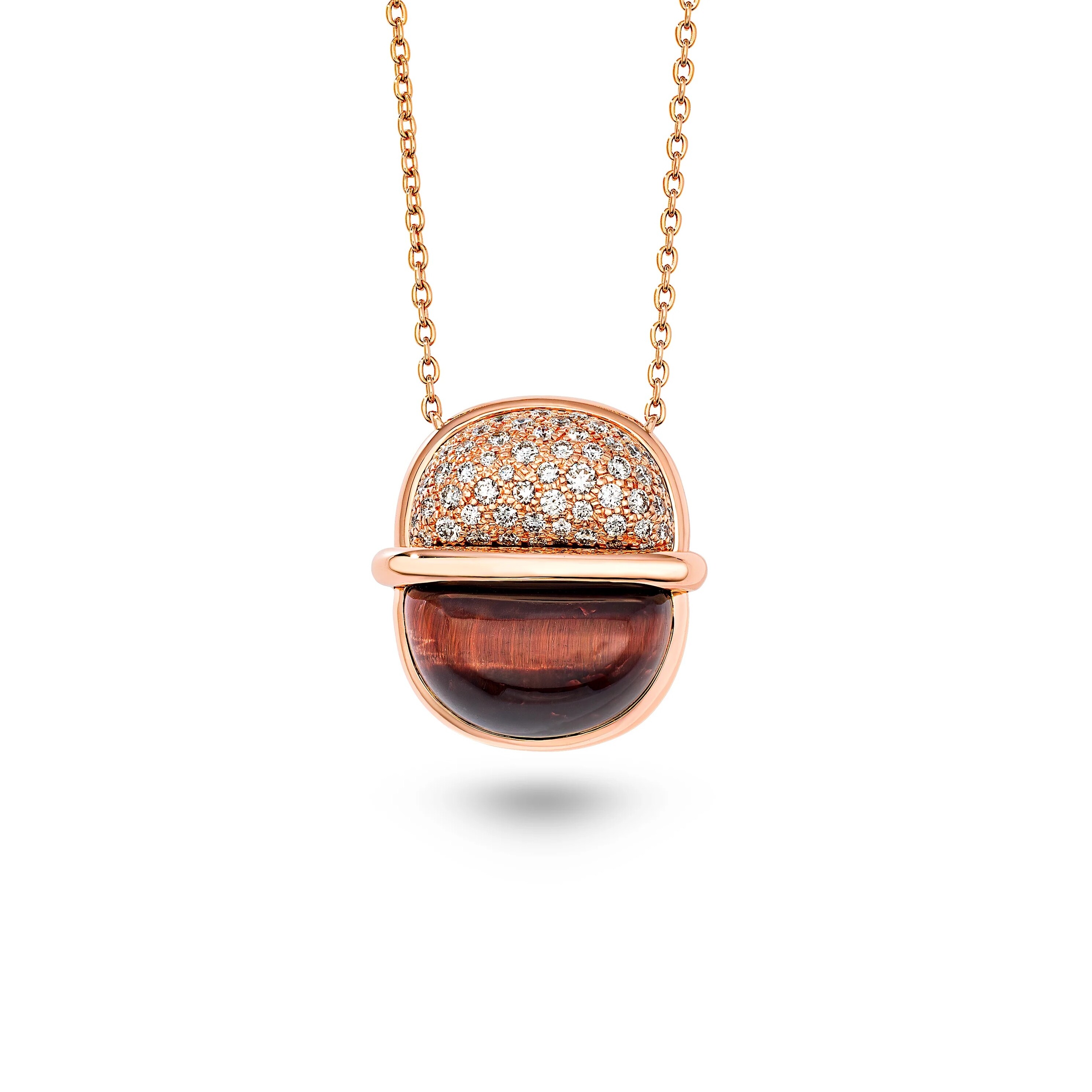 Amrita Small Round Necklace in Red Tiger's eye and Diamonds