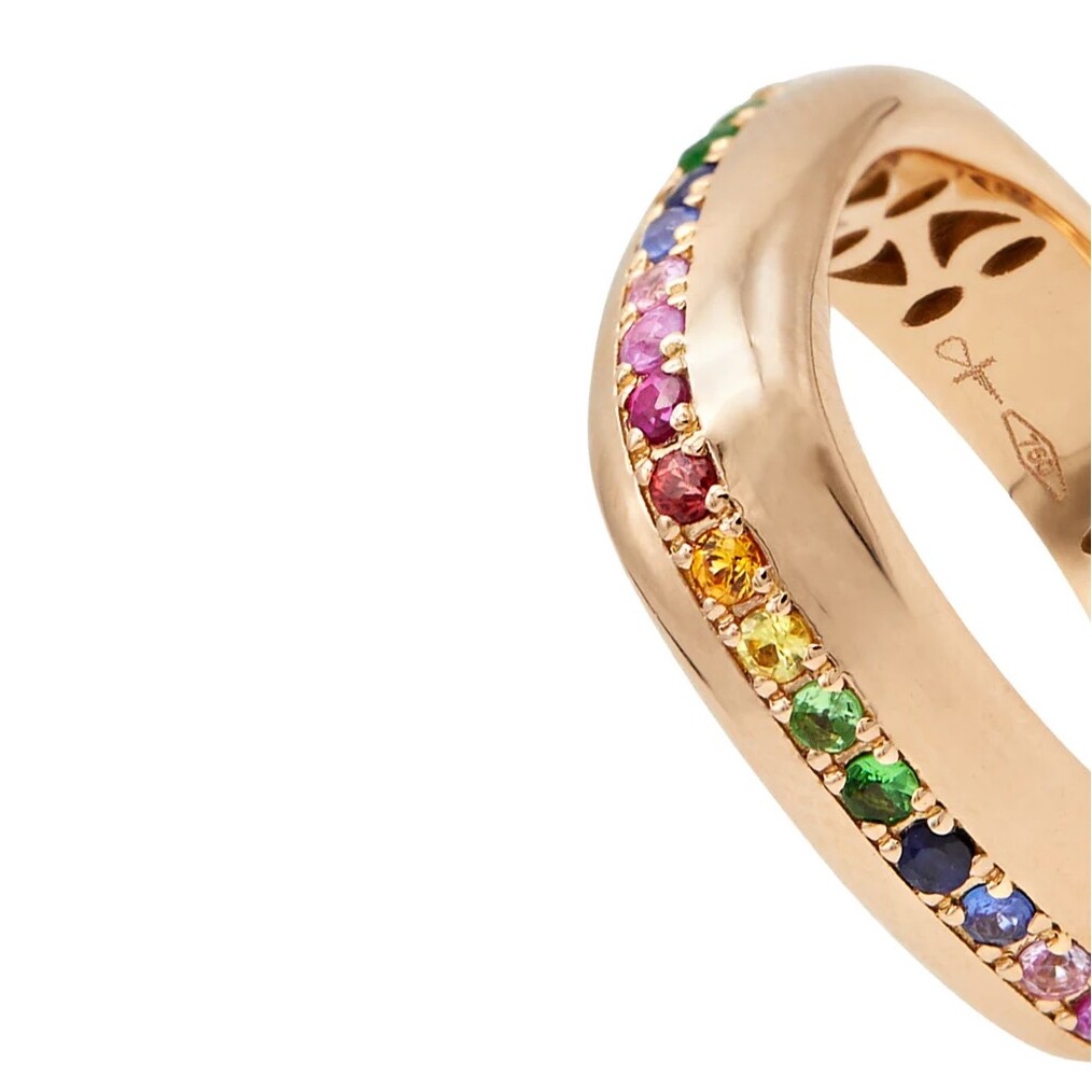 Iconica Pomellato Iconica ring, rose gold, tourmalines, saphhires, tsavorite, spinel, zirconium oxide, tanzanite, garnet, amethyst, ruby and peridot