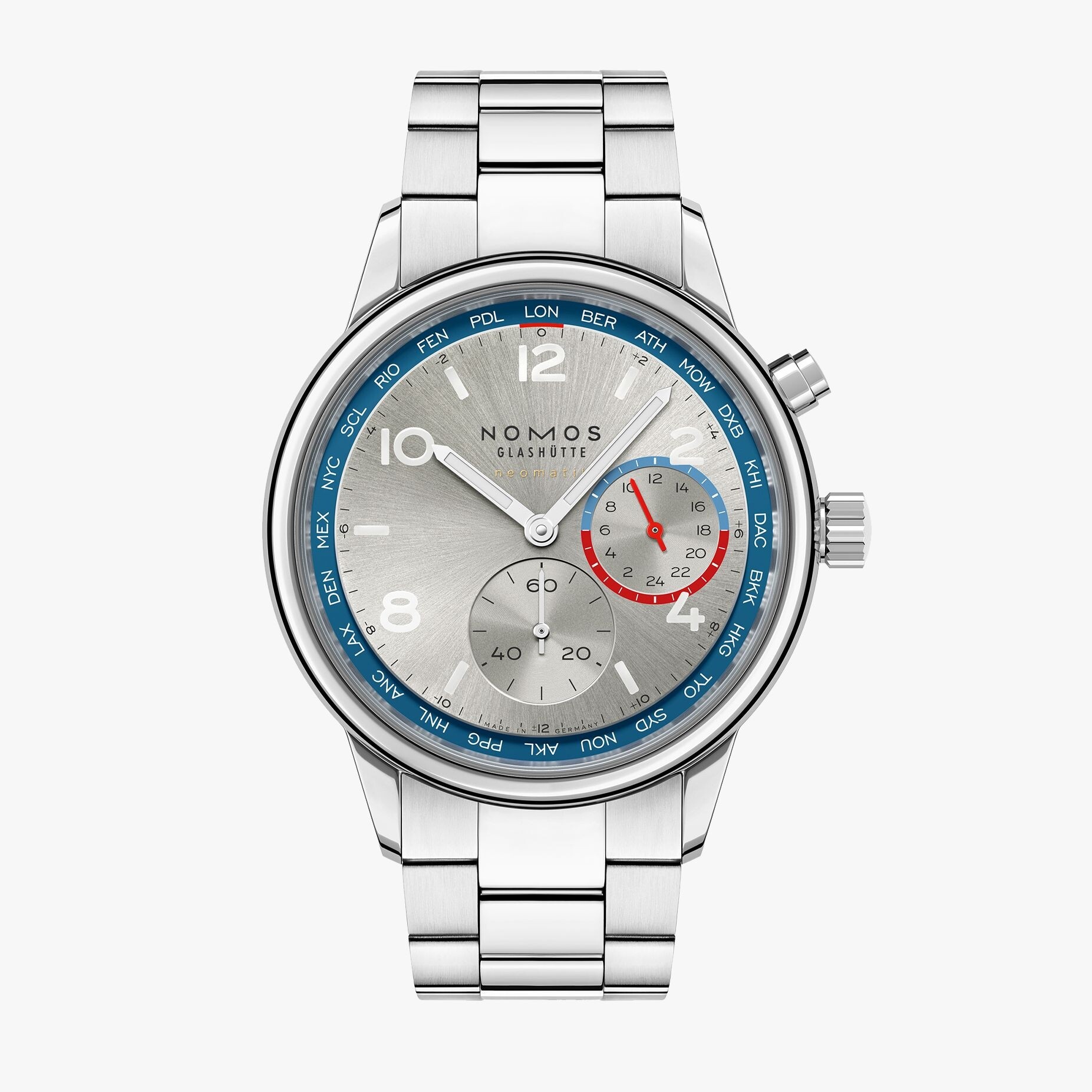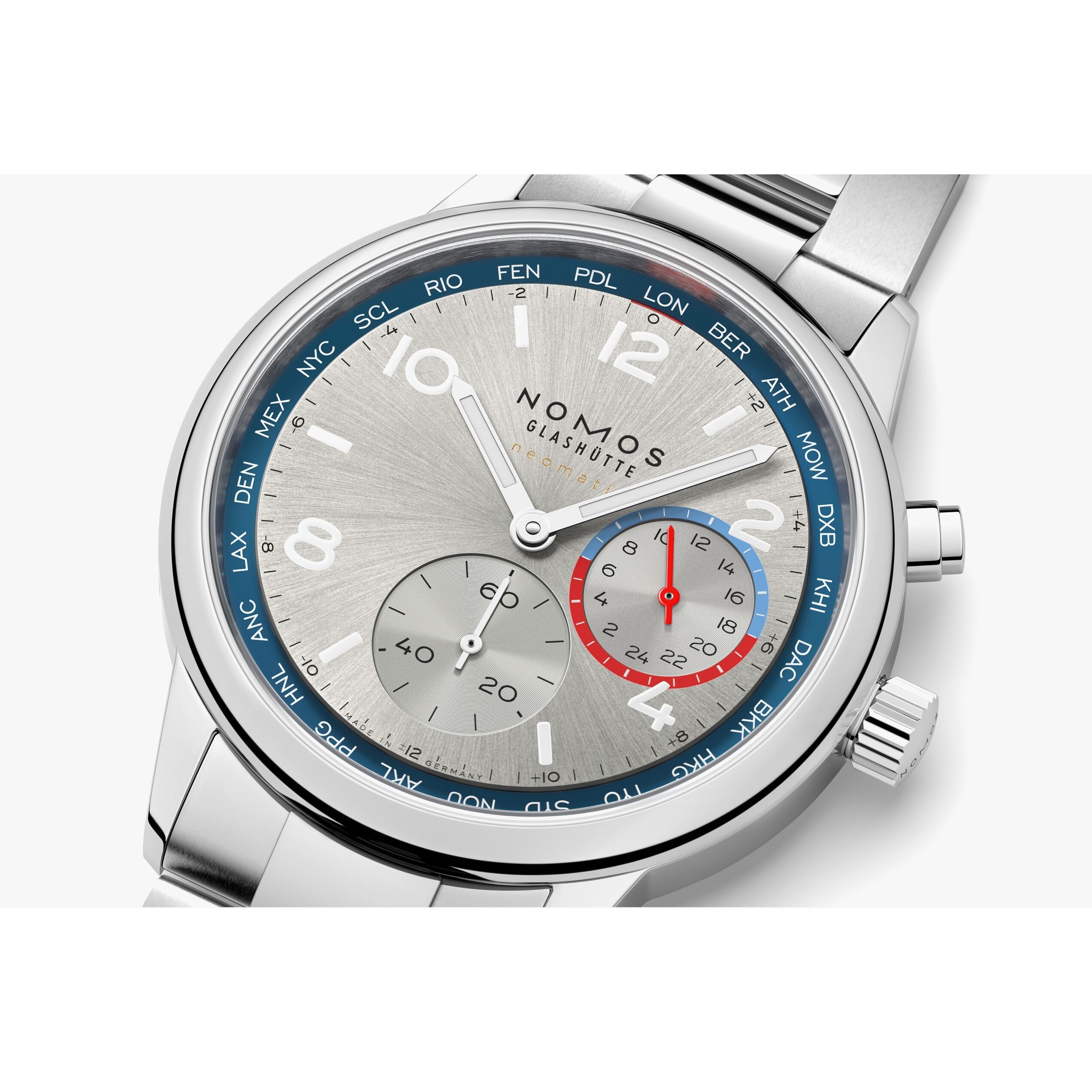 A sleek, travel-ready timepiece with a crisp silver dial and NOMOS’ intuitive Worldtimer function for quick, effortless timezone changes. Powered by the DUW 6101 automatic caliber, it blends sporty durability with refined, modern elegance.