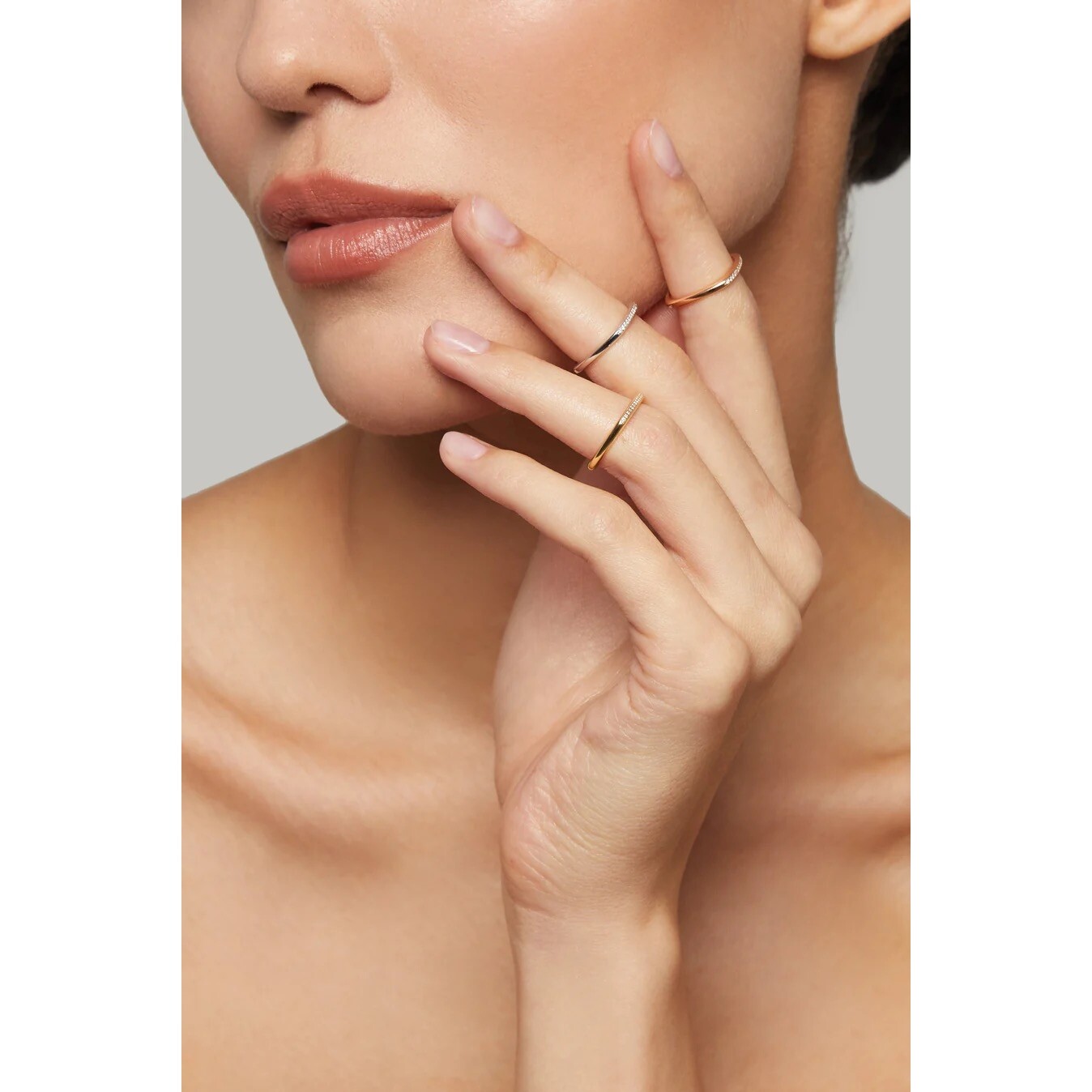Delicate and endlessly elegant, the Slim Eternity Band features a refined line of brilliant-cut diamonds set into warm rose gold. Its slender silhouette makes it perfect for stacking or wearing alone as a subtle touch of sparkle. A timeless essential crafted for effortless, everyday luxury.