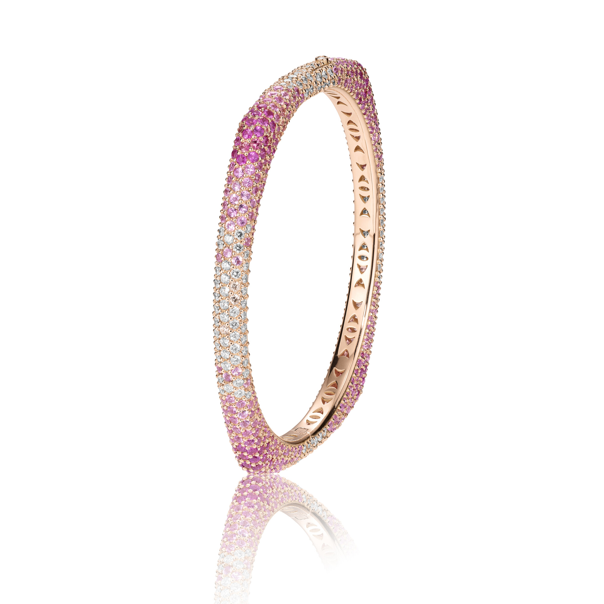 Crafted in 18K Rose gold with diamonds & pink sapphires, Ghost Bracelet embodies the collection’s core design philosophy: duality in form and feeling. Slightly slimmer than Star Ghost, it blends architectural precision with graceful movement. This luxury bracelet is a wearable symbol of individuality, timeless, modern, and effortlessly striking.