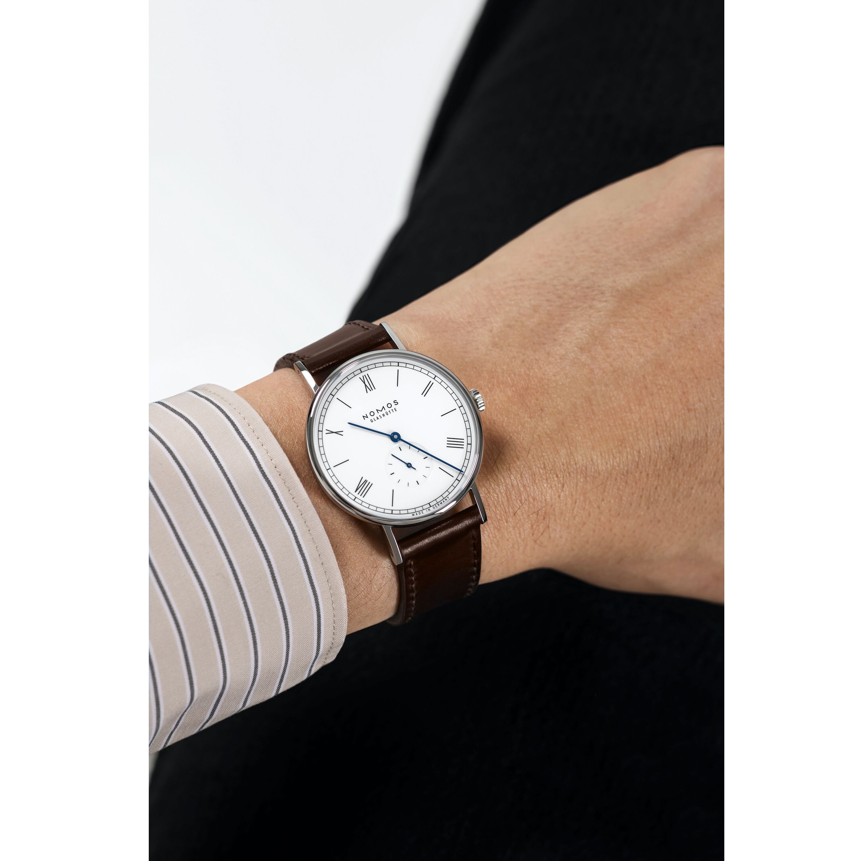Ludwig 38 has a new look, and yet remains classic—now with a glossy enamel-white dial. The movement within is a classic in its own right: Manual caliber DUW 4001 keeps on running, exactly as it always has.