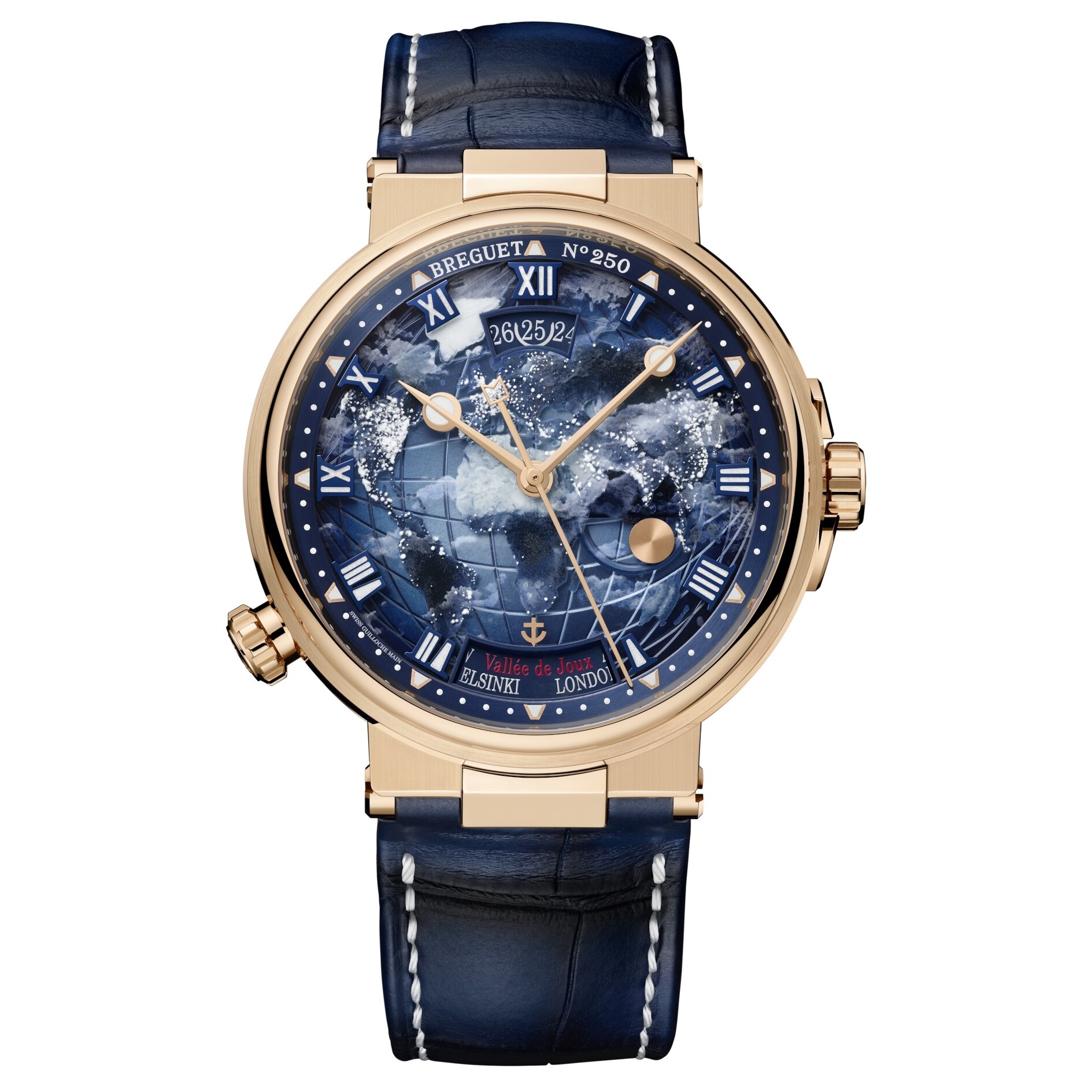 A masterpiece of mechanical ingenuity, the Marine Hora Mundi 5555 showcases Breguet’s world-time complication with effortless elegance. Its refined dial, bold marine-inspired details, and instant time-zone display reflect exceptional craftsmanship. A true novelty, uniting technical brilliance with sophisticated style.