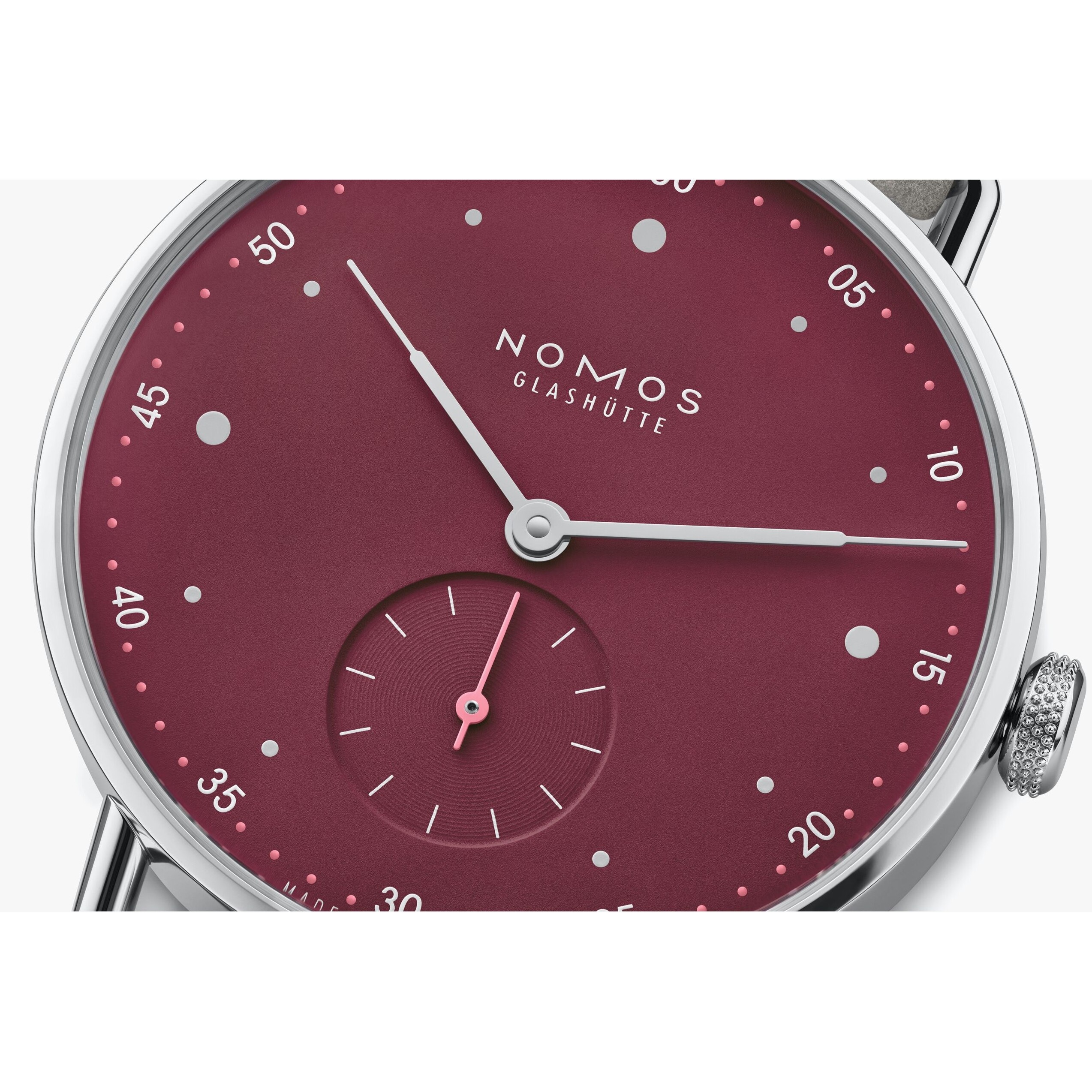 Some of the most important points on a city dweller’s to-do list can be found on this wine-red dial. The smallest of them are in an assertive pink—as is the second hand of Metro 33 muted red. The multi-award-winning mechanical watch designed by Mark Braun, shown here with manual winding, in stainless steel and with a smart diameter of just 33 millimeters. Because city life can be simply beautiful!