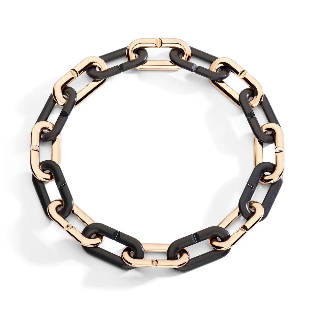 Chain composed with eight ebony links and eight 18K rose gold links.
