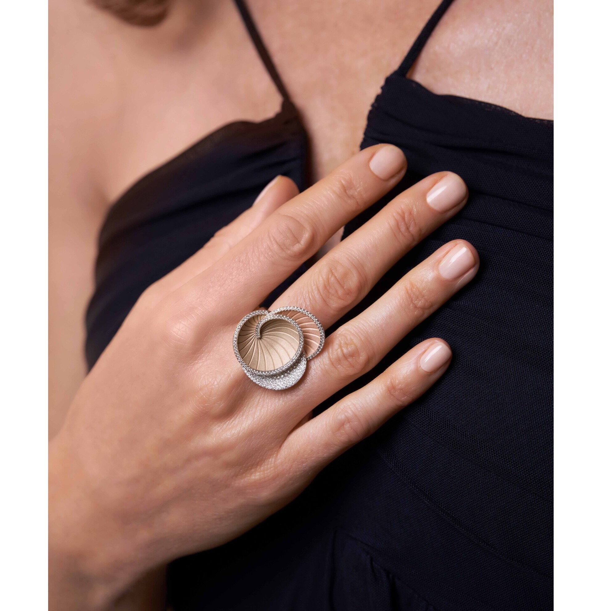Hypnose Series Ring, 18Kt White Ice, Natural Beige and Pink Champagne Gold with Diamonds
