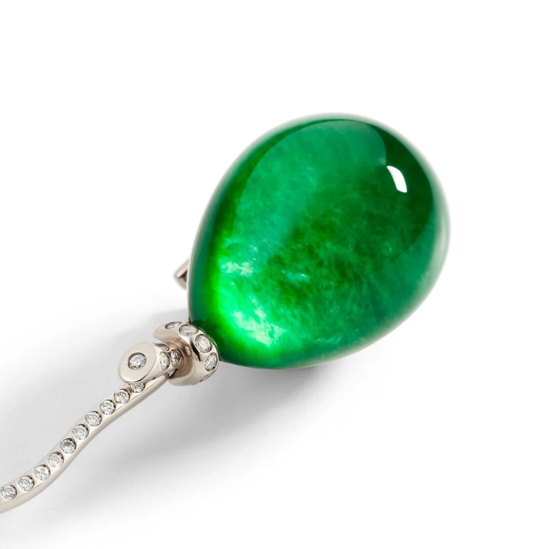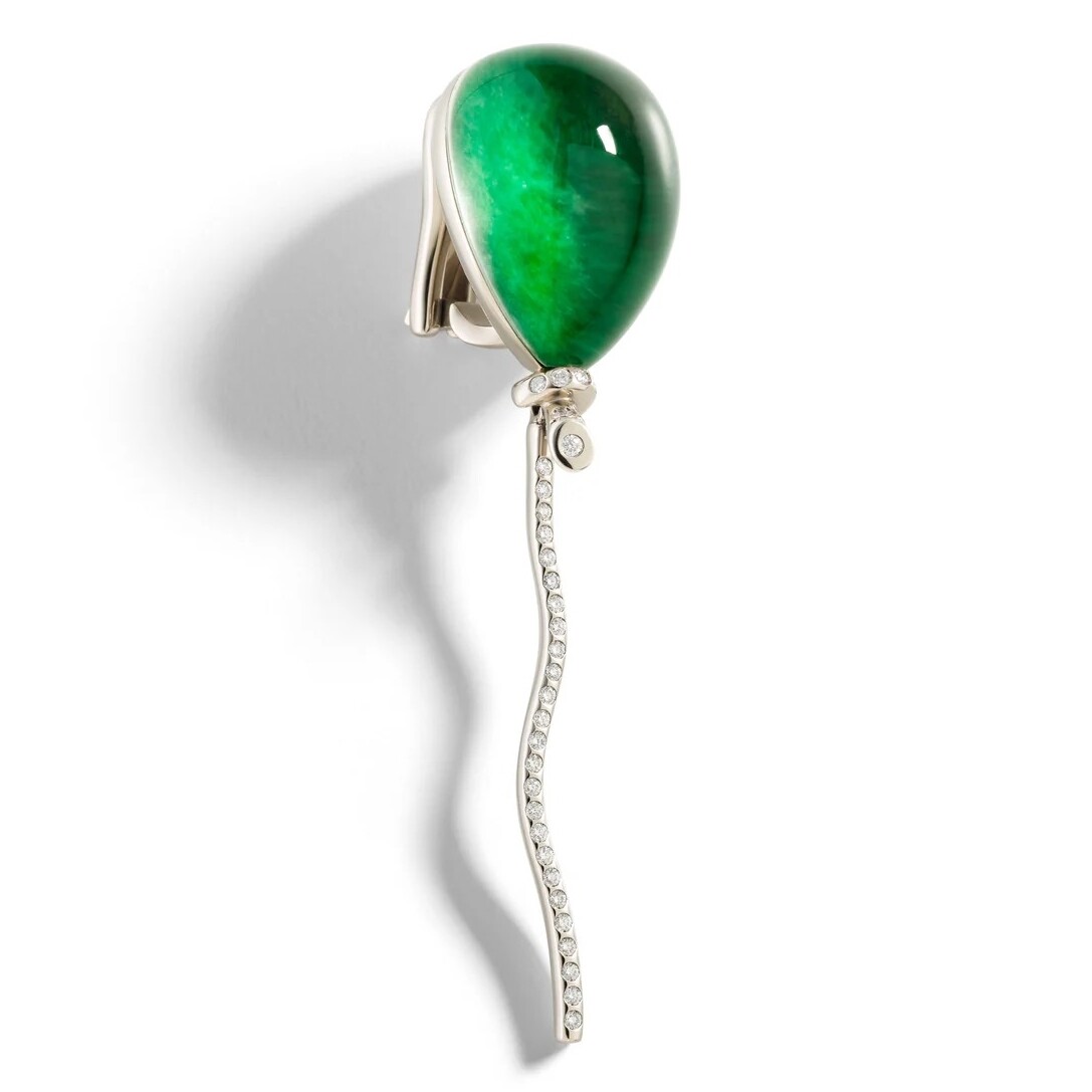 Single earclip in 18K white gold, diamonds, jade and rock crystal. Diamonds 38, ct. 0,20. Diamond quality DEF, IF to VVS.