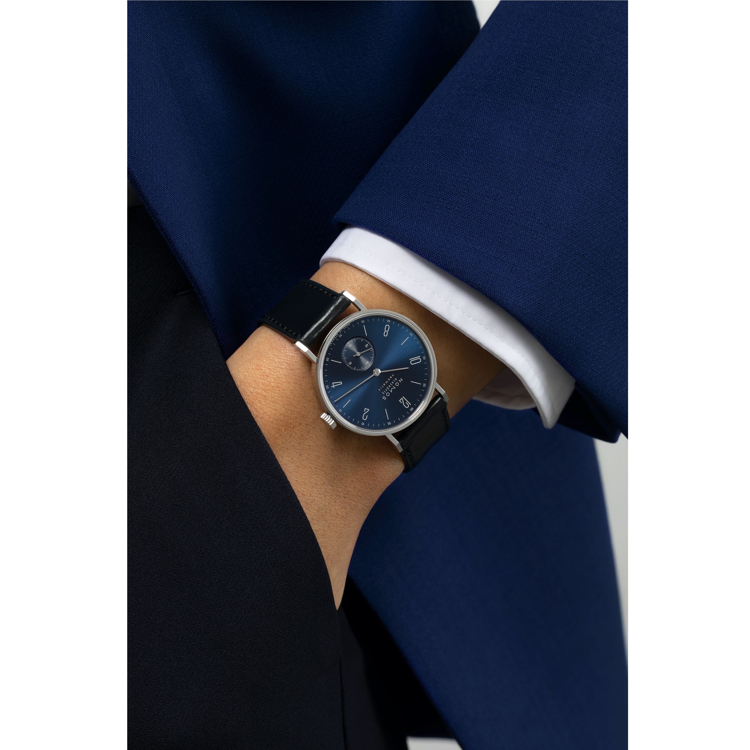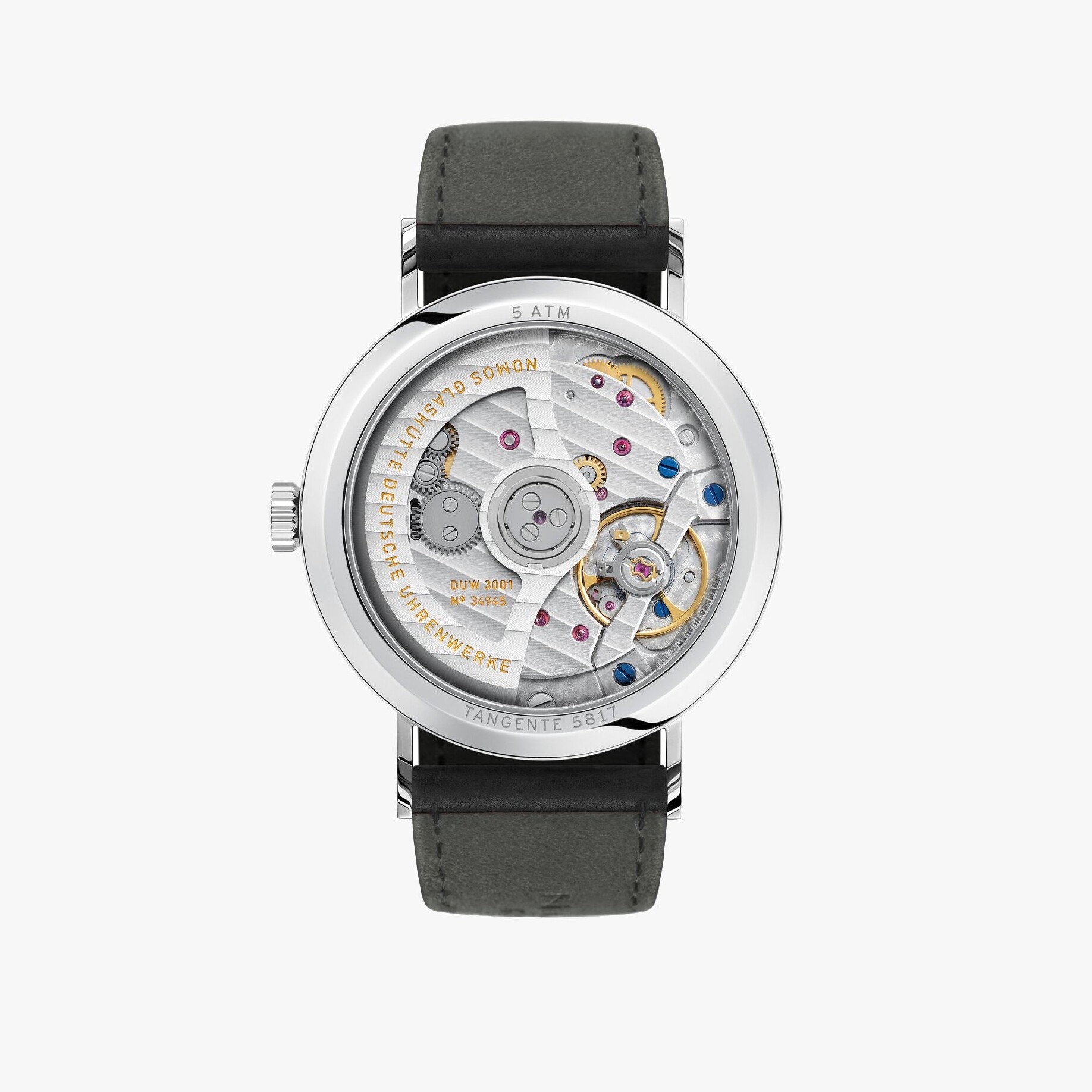 This automatic watch is the epitome of a dress watch. The depths of the blue dial with sunburst finish shimmer gold, lending the minimalist elegance of the iconic Tangente additional confidence. The desire for the extraordinary is expressed here, the celebration of the perfect combination of performance and shine. The innovatively low-profile, highly precise DUW 3001 caliber ticks away inside the highly polished stainless steel case—Tangente neomatik blue gold delivers Glashütte watchmaking in a multiple award-winning design.