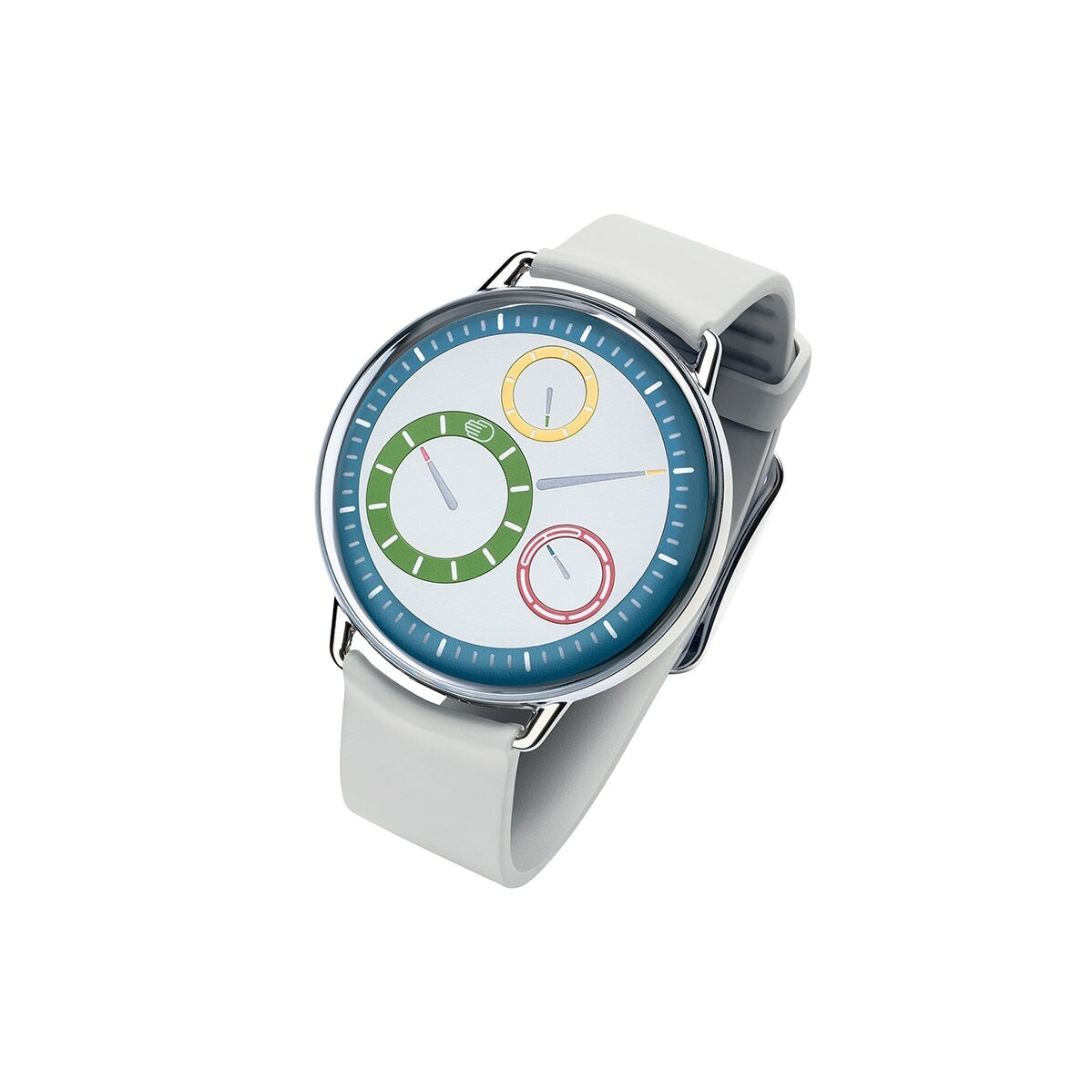A vibrant interpretation of Ressence’s signature design, featuring a playful multicolour dial with orbital rotating discs. Crafted in lightweight titanium, it blends technical innovation with a bold, artistic aesthetic for a truly distinctive look.