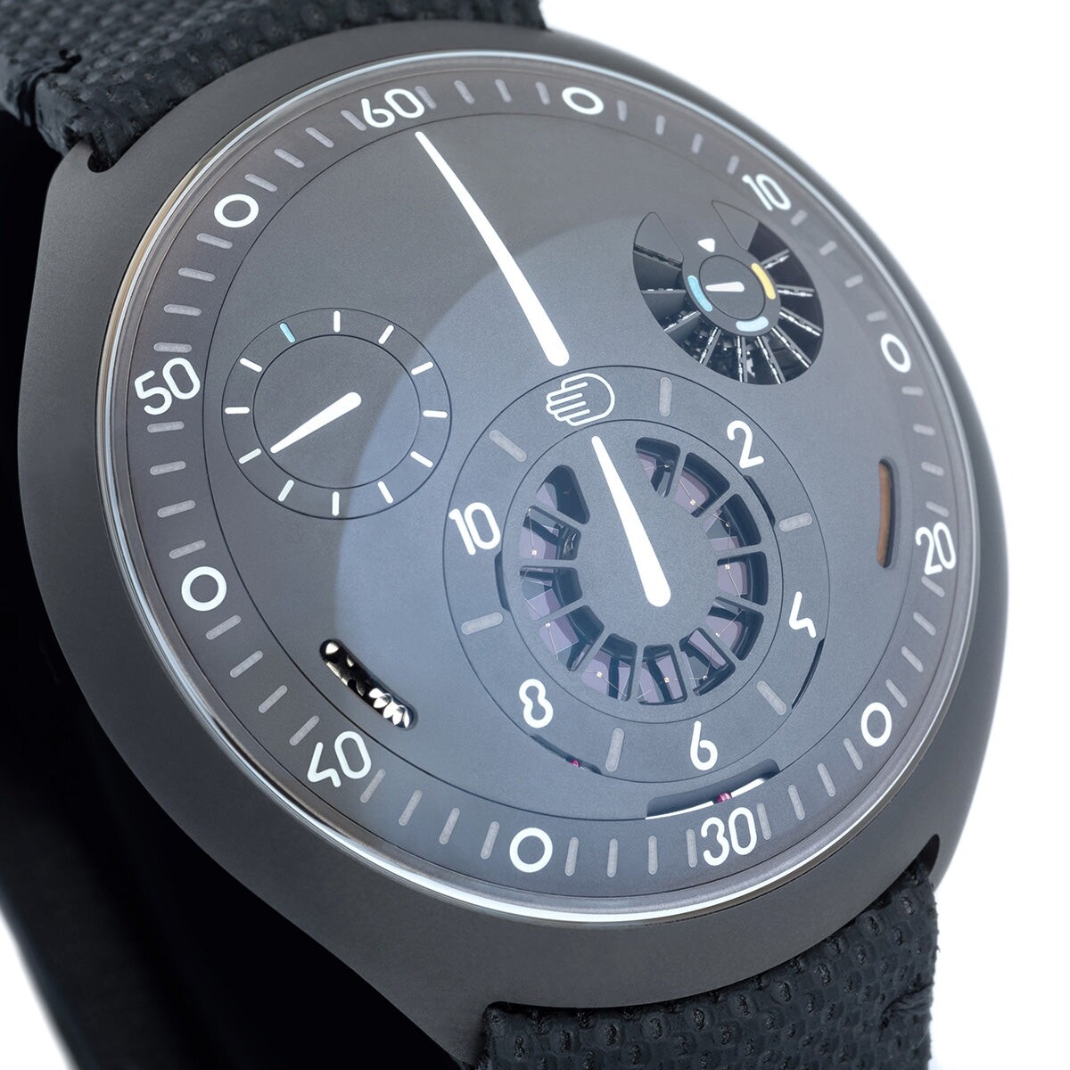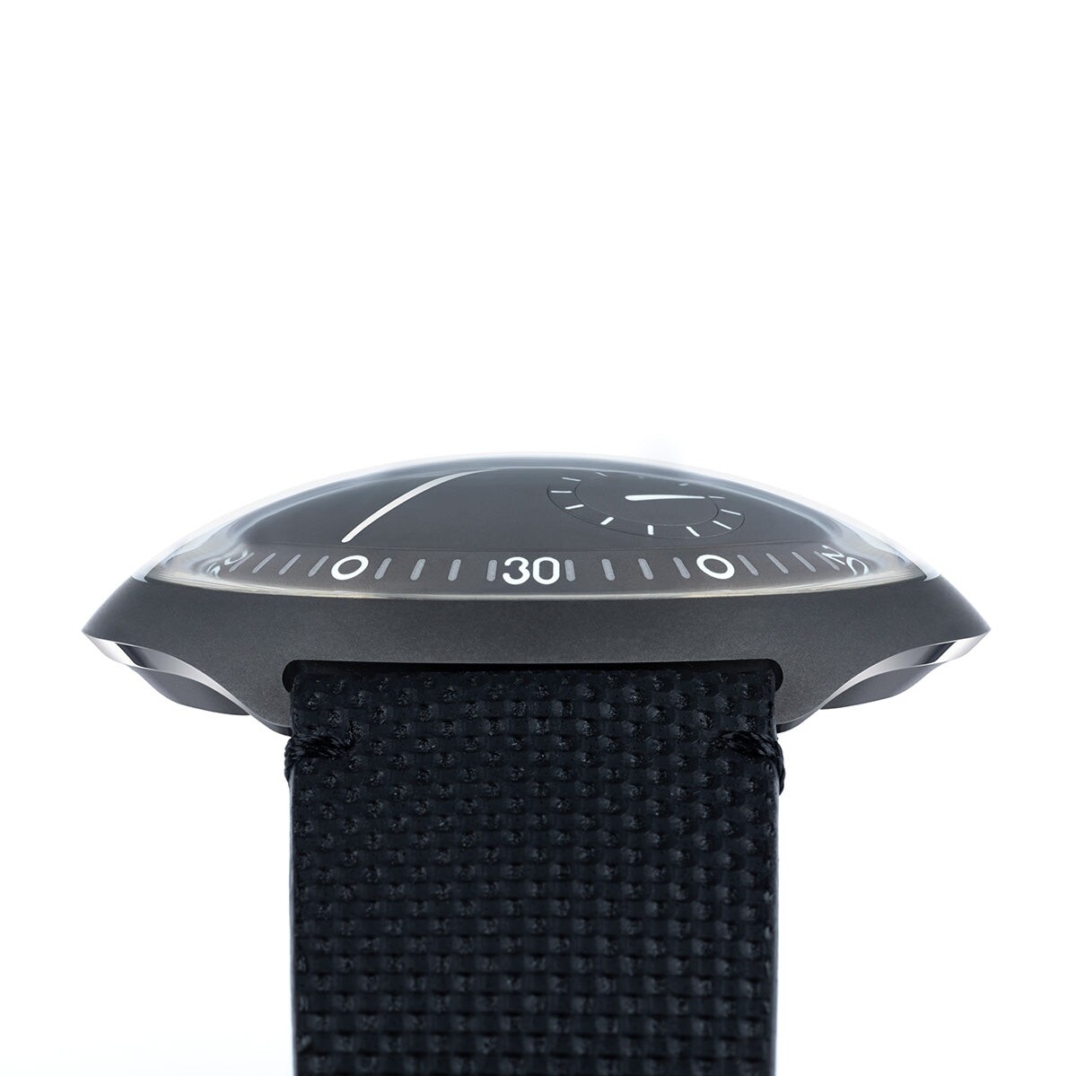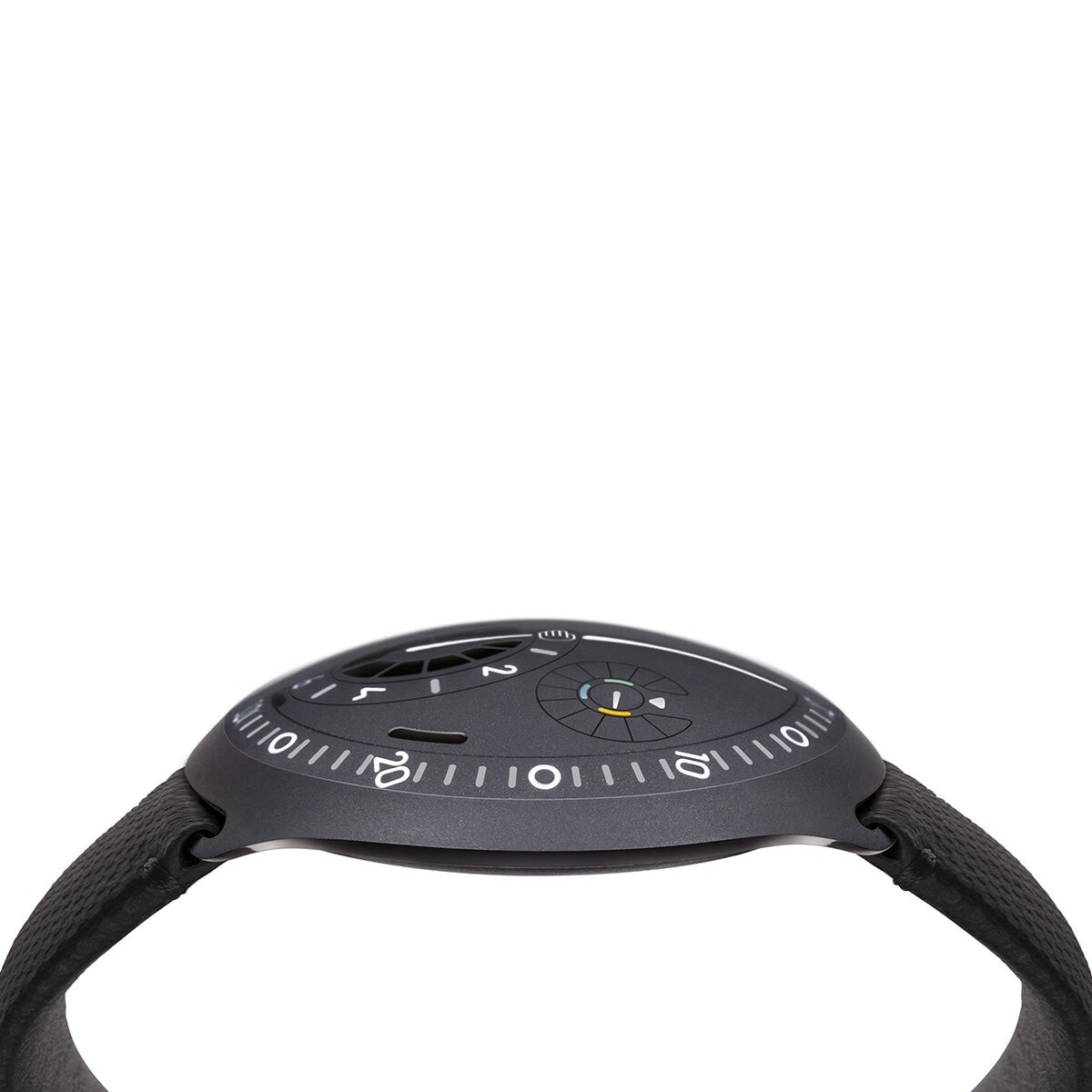 A sleek titanium watch distinguished by its deep anthracite dial and advanced e-Crown® technology for intelligent, self-adjusting timekeeping. Modern, technical, and refined, it showcases Ressence’s vision for the future of mechanical watchmaking.