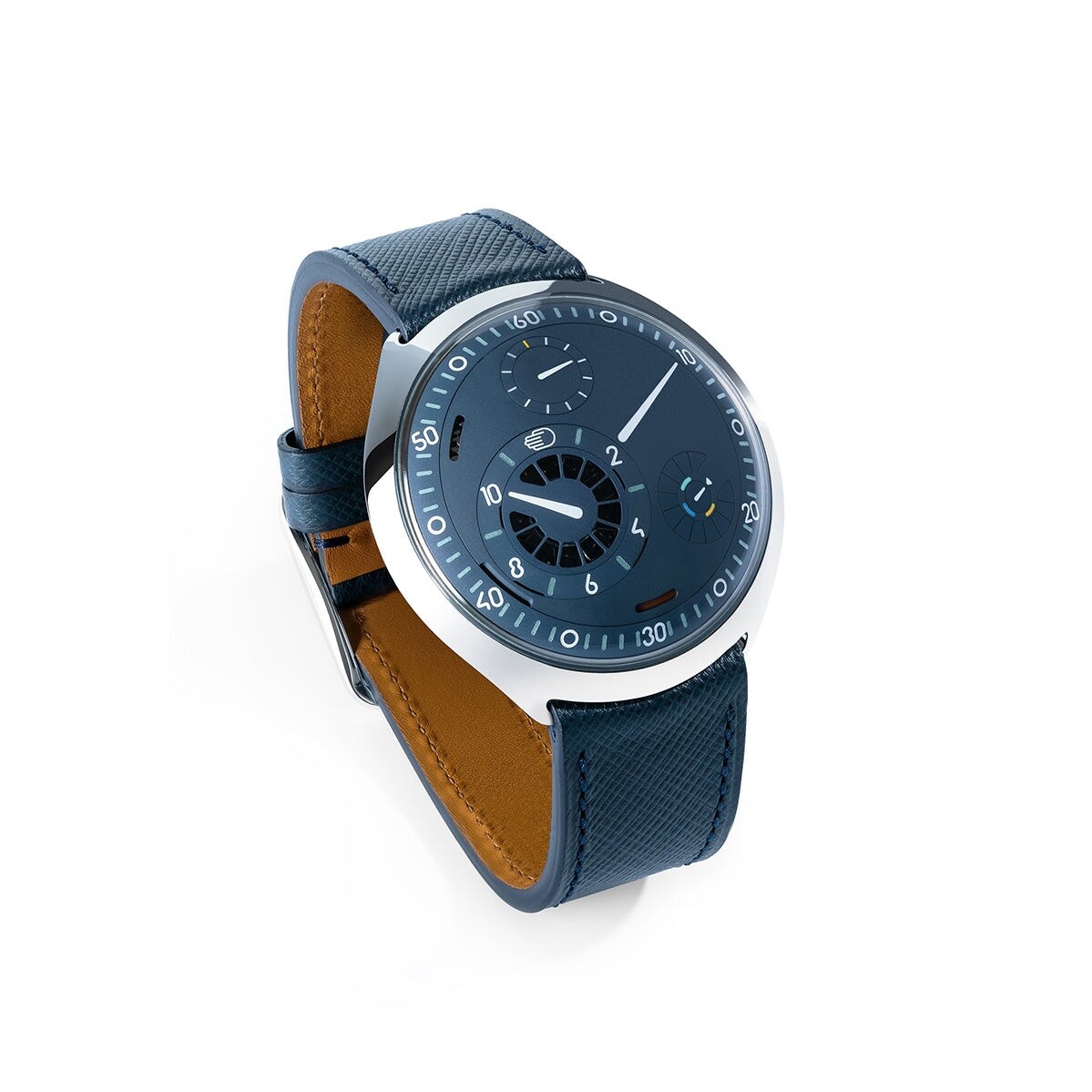 A cutting-edge titanium watch featuring a deep night-blue dial and Ressence’s e-Crown® technology for intelligent timekeeping. Sleek, modern, and highly innovative, it blends mechanical mastery with contemporary elegance.