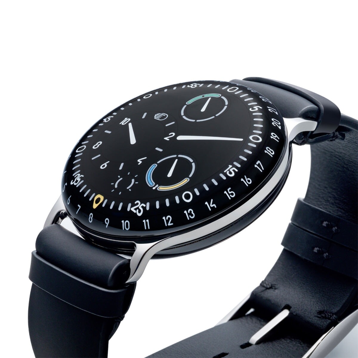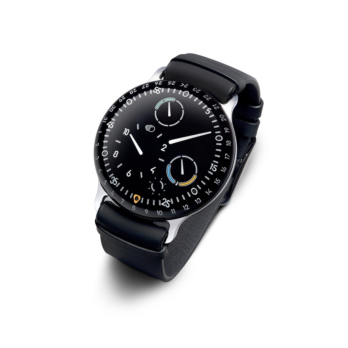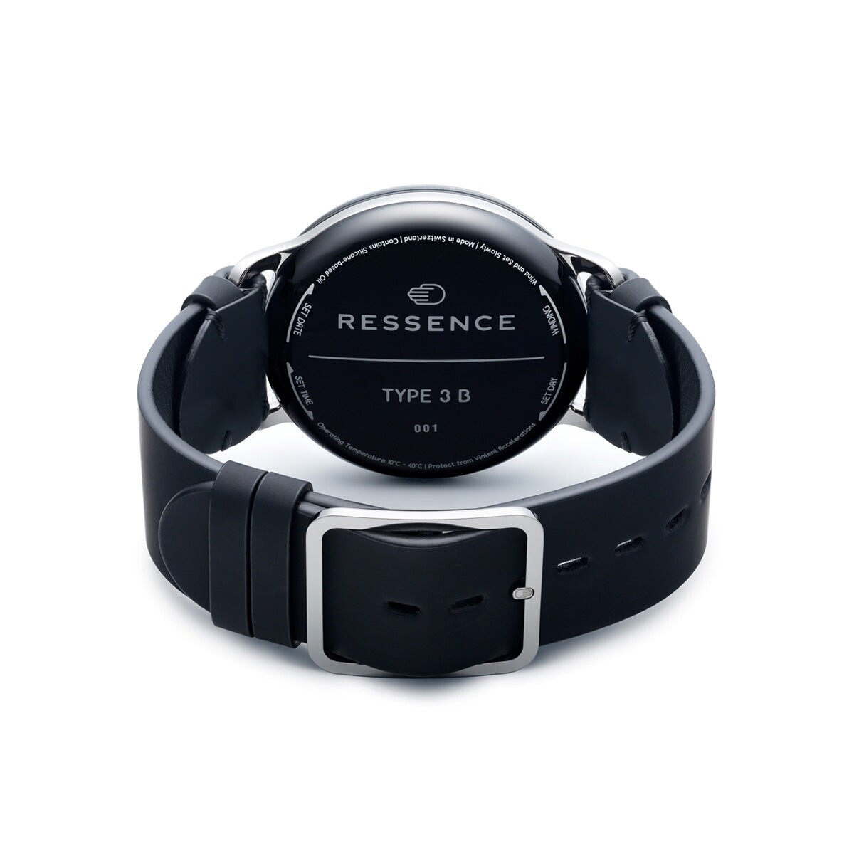 A sleek full-black timepiece featuring Ressence’s oil-filled dial for perfect readability and a seamless, fluid display. Modern, refined, and technically advanced, it embodies the purest expression of the brand’s innovative design.