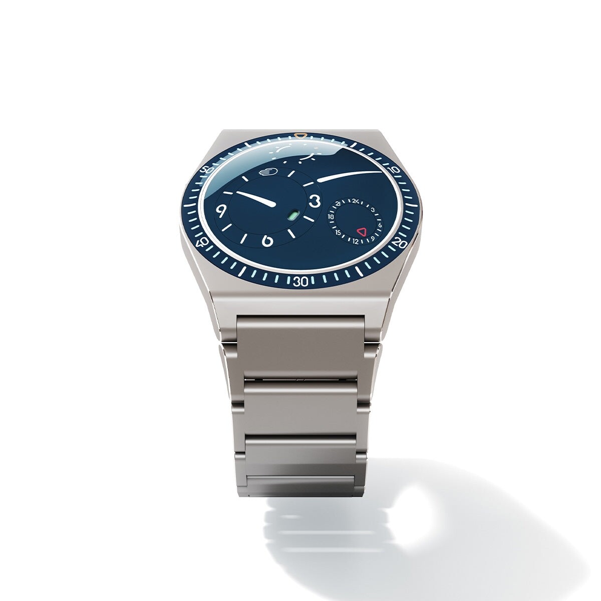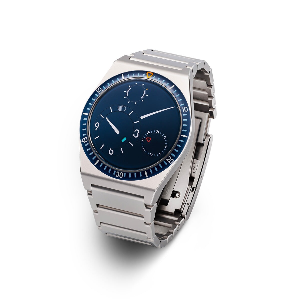 A sculptural, ultra-modern timepiece showcasing a deep night-blue dial and Ressence’s advanced orbital display. Fluid, futuristic, and intuitively legible, it represents the brand’s most artistic expression of contemporary watchmaking.